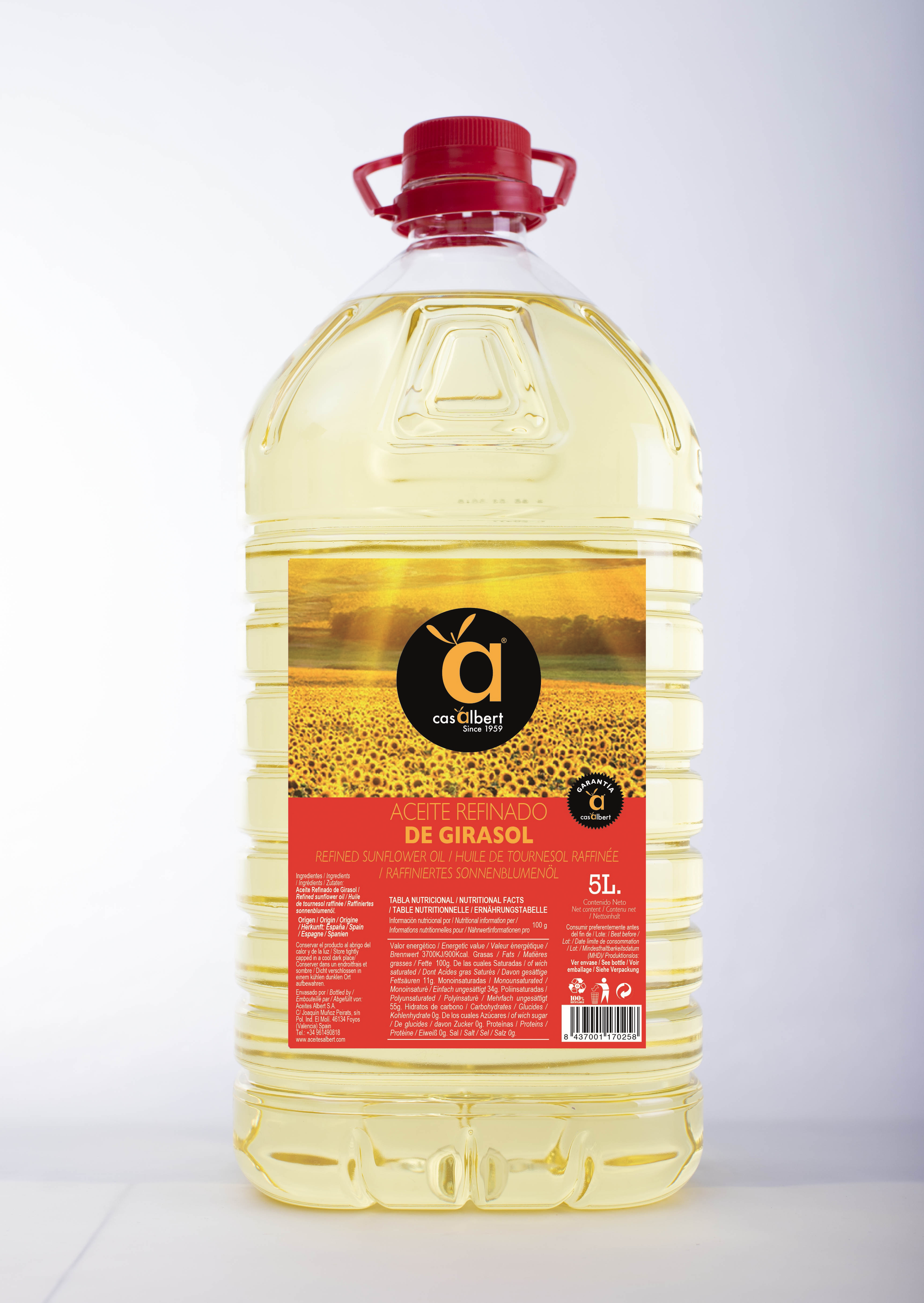 Un producto de gran consumo, estable, sin espumas. Hágaselo saber a sus clientes que en su cocina no se consume cualquier aceite sino que se consume un aceite excelente Casalbert.